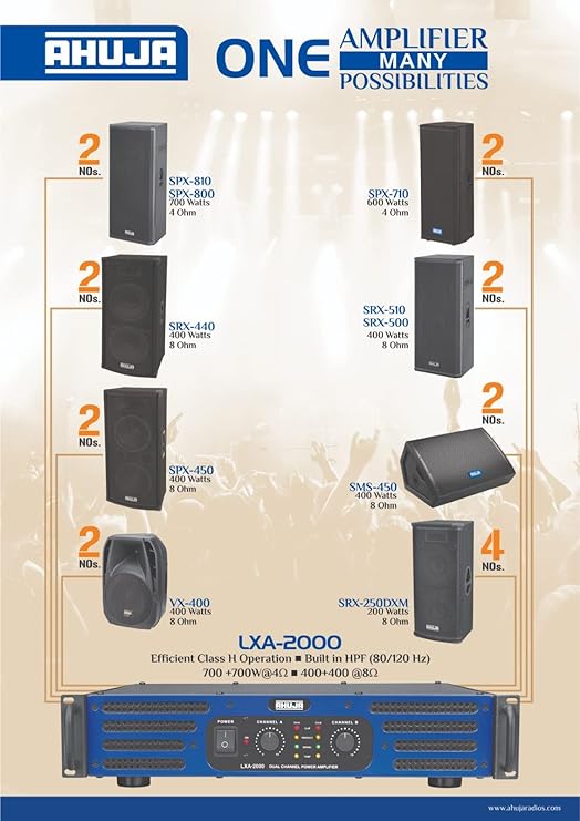 • Ahuja DUAL CHANNEL POWER AMPLIFIERS 2000 Watts rated output.